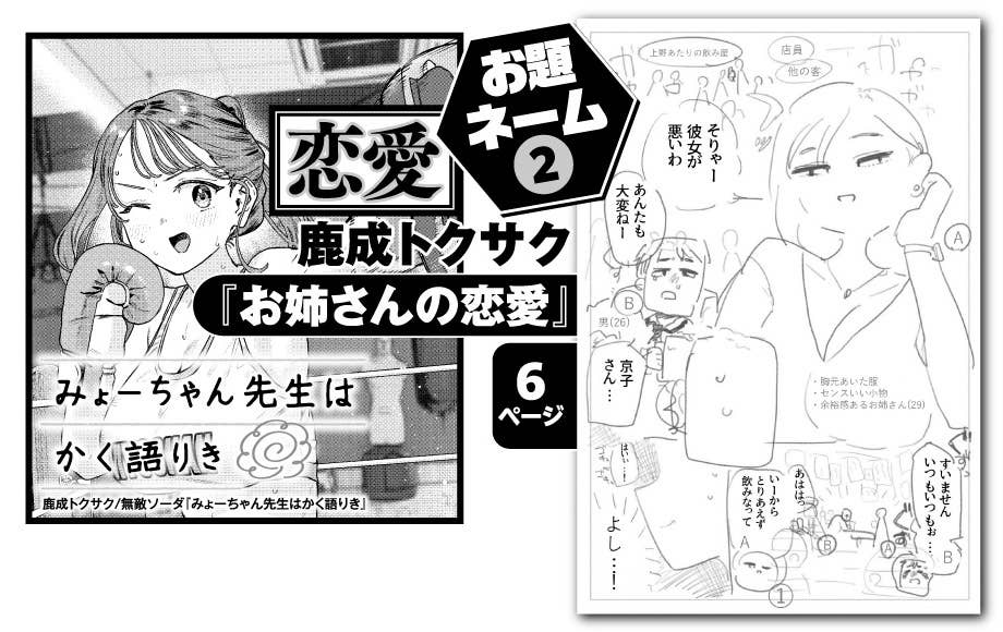 『odd and kind』の橋本カヱ氏、今のヤンマガを代表する3名の原作者が描いたお題ネームから1つ選び、